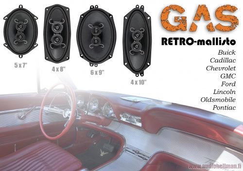 ![]() GAS Retro mallisto vanhoihin jenkkiautoihin. Yksi kaiutin stereosignaalille esim kojelautaan 4"x 8" 79€ |